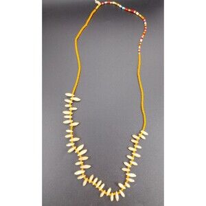 This Vintage Beaded Cowrie Shell Necklace set includes two handmade necklaces in red, orange, and white colors. The cowrie shells are the main stone, and the style is beaded. These necklaces have a vintage beach theme, perfect for unisex adults who appreciate unique and original pieces. Crafted with shells and featuring vibrant orange tones, these necklaces are a stylish addition to any jewelry collection, adding a touch of authenticity and charm to any outfit.