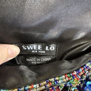 AI: The Vintage Beaded Crossbody Black Sequin Purse is a stylish and elegant accessory perfect for holiday evening events. Made in the 1990s by the brand Swee lo, this purse features a metal snap closure and is adorned with black beads and sequins, giving it a glamorous look. With a compact size of 6.25" in height and 6.5" in width, this purse is designed for women who love to make a statement with their eveningwear outfit. The crossbody style provides convenience and versatility, making it a must-have for any special occasion.