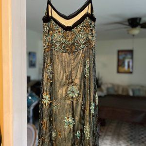 You will look stunning in this beautiful size 4 vintage beaded dress with spaghetti straps. The dress falls just a little under the knee.
