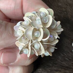 Vintage Beaded Earrings Cream Iridescent Sequin Cluster Chunky 1980s Pierced