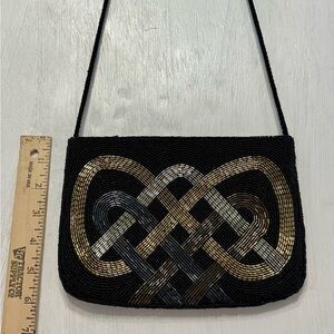 #vintagebag #beadedpurse #eveningbag #vintagefashion #handmadebag #blackandgold #formalaccessories #celticknot