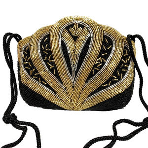 Vintage Beaded Evening Bag Shoulderbag Dressy Purse Black & Gold Retro Disco