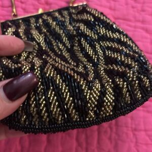 Elegant vintage evening bag. Features intricate beadwork. Gold chain adds a touch of luxury. Small, see the pictures with measurements, New