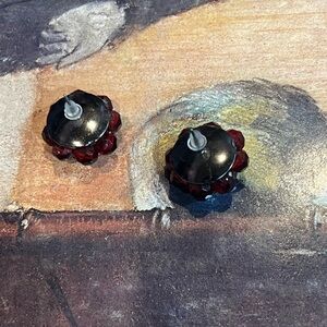 Vintage Beaded Flower Rust Red Beaded Stud Earrings