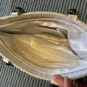 Vintage beaded feather design handbag. In great shape MINUS the adhesive discoloration. Send me an offer!