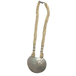 Vintage Beaded Jeweled Bib Collar Necklace w/ Large Pendant