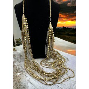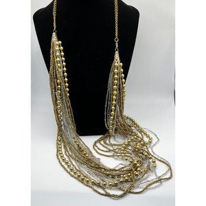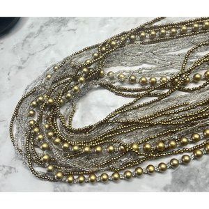 Vintage Beaded Multi Strand Necklace Seed Beads Gold Metal Tones 32" Long