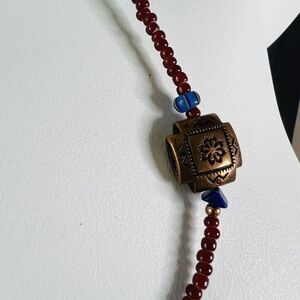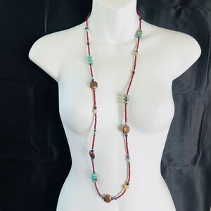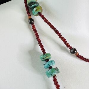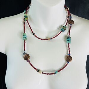 Vintage Beaded Necklace Natural Stone Aztec Cross Beads Red Turquoise Blue 1504