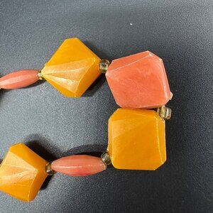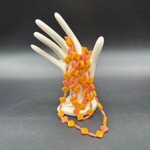 Vintage Beaded Necklace Orange Pink Geometric Plastic Mid Century Modern Jewelry