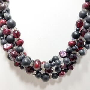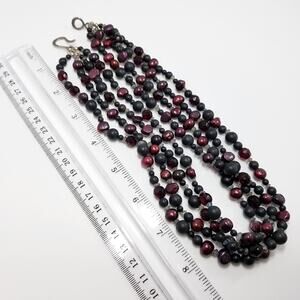 Vintage Beaded Necklace Pearled Burgundy, Matte Black Red Black Czech Crystal