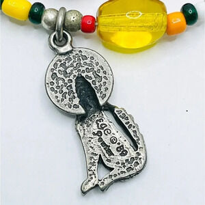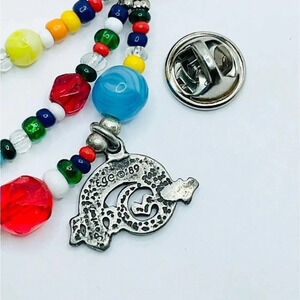 Beautiful southwestern item to close or dress up a sweater, cardigan, or jacket. Signed EGE ‘89 Pewter. Approximately 5” long and made with glass beads and each sun is 1” in diameter. Well made