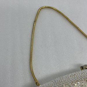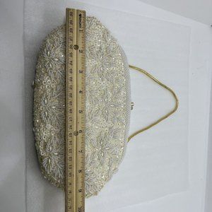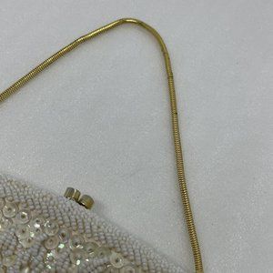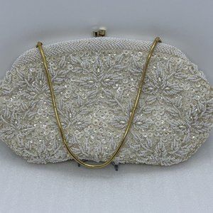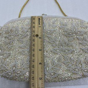Vintage Beaded Purse Kiss Lock Bags by Debbie Cream White Shimmer Gold 9.5x5.5”.