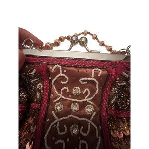 Vintage Beaded Sequin Evening Clutch Purse With Metal Clasp & Beaded Handle
