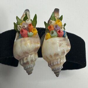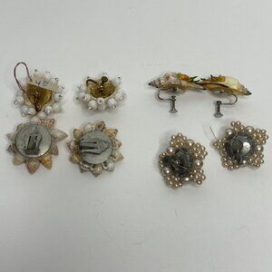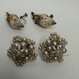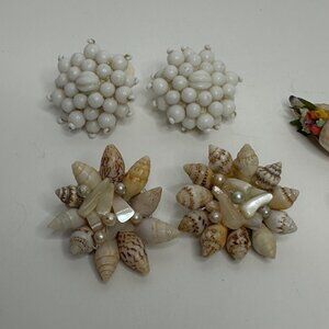 Vintage Beaded & Shell Clip-On Earrings Set of 4 Beach-Themed Jewelry