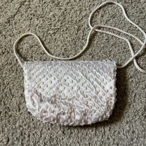 Vintage Beaded Shoulder Bag Beautiful White Clear Elegant