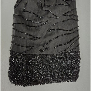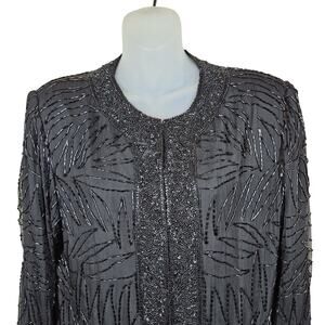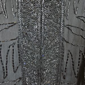 Vintage Beaded Silk Jacket Duster Coat Large Elegant Black Party Wedding Blazer