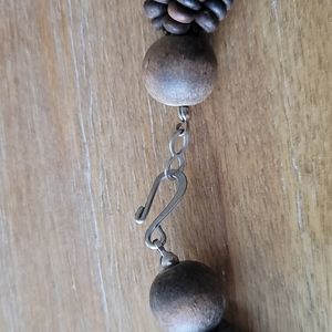 Large wooden accents & natural-tone circular beads in warm earth shades