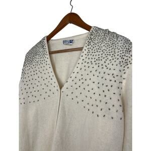 Vintage Beaded Sweater Adele Joyce Women’s Sz Large Cream Grandmacore Wool Blend