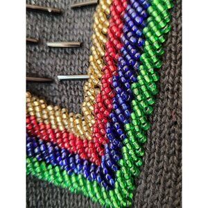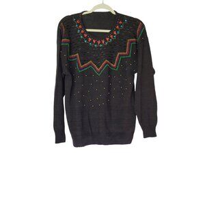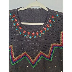 Vintage Beaded Sweater Embroidered Floral & Chevron Design Size XL