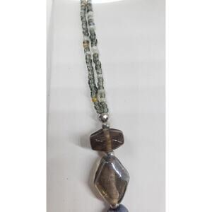 Vintage Beaded Tassel Necklace Gray Glass Beads Multi Strand Boho Statement 18in