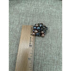 Wire Wrapped Pearl Cluster Ring, Boho, colored pearls and mixed beads. Blues and coppers