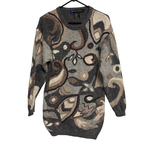 Gorgeous vintage beaded sweater, perfect for adding a touch of elegance to any outfit! This unique piece features a blend of luxurious materials including silk, soft angora rabbit hair, and cozy lambswool.