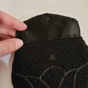 Vintage Beaded Wristlet Black Snap Closure and Silk Lining