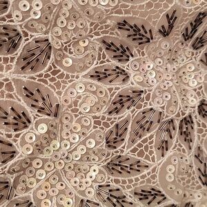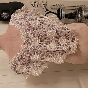 Stunning Vintage Beaded and Sequin Shawl. More of a Collar than a Shawl. White with Mother of Pearl colored Sequins with Charcoal Gray colored Beads. Hanging Faux Pearls from Edges. Absolutely gorgeous piece. One Size Fits Most. **Missing 2 Pearls from back point, shown in photo.**