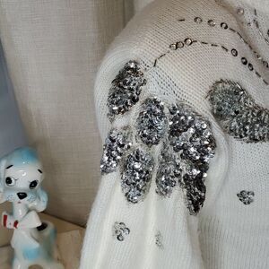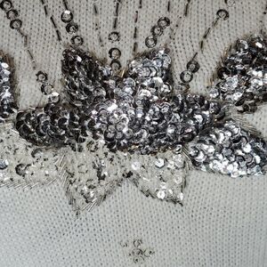Tagged size is Small, Gorgeous Medium weight sweater, large shoulder pads, beads, studs & sequins.