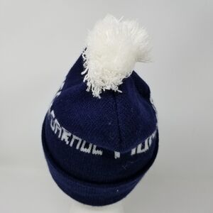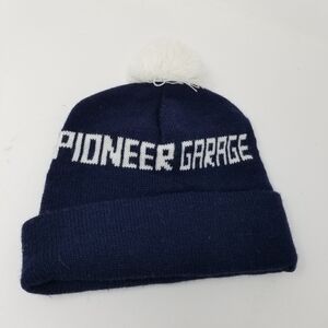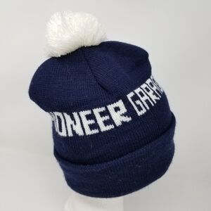 Vintage Beanie Knit Hat Pom Spellout Pioneer Garage Navy Blue White Fold Over OS