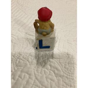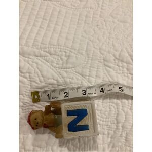 Good vintage condition, see all pics for details, Vintage boy bear in red hat and red bow tie, sitting in Alphabet block, letter L on front and N on back, See Measurements for Custom Fit
