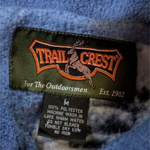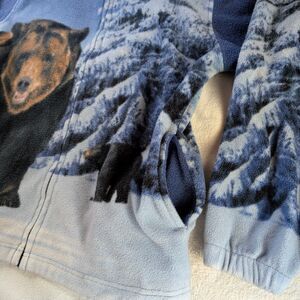 Vintage Bear Print Fleece Jacket Unisex Medium Blue Full Zip Mock Neck