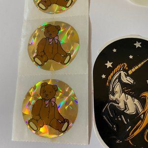 *One of the unicorn stickers is coming off the page and is partially no longer sticky and the other has a small stain. The bear strip has a stain running up and down it and the large bear sticker has a damage on the front - please view all images*