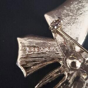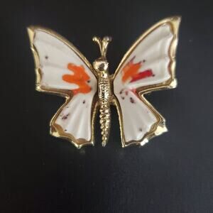 Vintage Beatrix Butterfly Brooch Gold Tone White Enamel Orange Details 1950's
