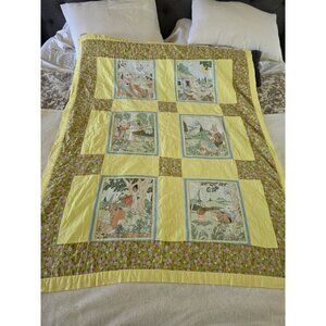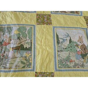 Vintage Beatrix Potter Peter Rabbit Baby Quilt Nursery Crib Blanket Yellow