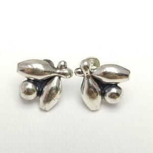 Vintage Beau Sterling Silver Bowling Pins and Ball Clip On Screw Back Earrings
