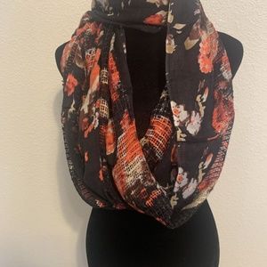 Vintage Beautiful Black & Tan Floral Infinity Scarf