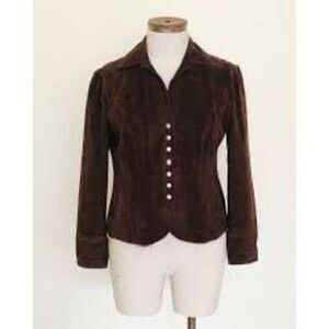 This beautiful vintage brown fitted jacket is the perfect addition to your wardrobe with snap closures in the front and fitted throughout. Item is in beautiful condition and pre-loved. Item is a size large.