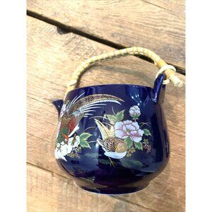 Vintage Beautiful Cobalt Blue Lovely Japanese Tea Pot Porcelain Pheasant Theme