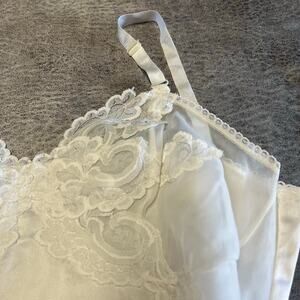 -Dreamy vintage white satin slip with delicate floral lace detailing and adjustable straps. Soft, silky feel — perfect as a nightgown or styled under an oversized blazer for that model-off-duty look. Effortless, romantic, and timeless.