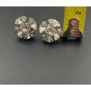 These vintage earrings feature a classic silver tone with clear rhinestones, embodying the elegance and beauty of the Retro era (1935-1950). The screw-back closure ensures a secure fit for women who appreciate timeless fashion. The huggie style and white/colorless rhinestones add a touch of sophistication to any outfit, making them a must-have accessory for vintage jewelry enthusiasts.