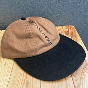 Vintage beautour vertical embroidered long black brim strap back dad hat. This is a brand new hat that is super comfortable and in great conditions. It’s a unique hat that has beautiful embroidery over the strap in the back. It also has a little bit of a longer black brim than usual. It’s an absolute must have.