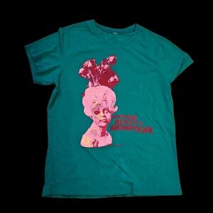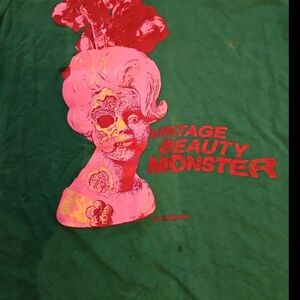 Vintage Beauty Monster Graphic Tee - Green and Pink, Fitted, Size Sm