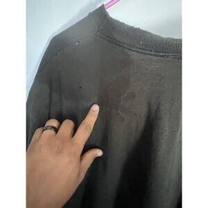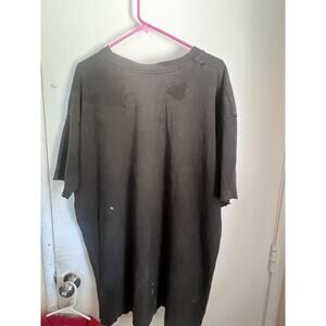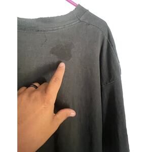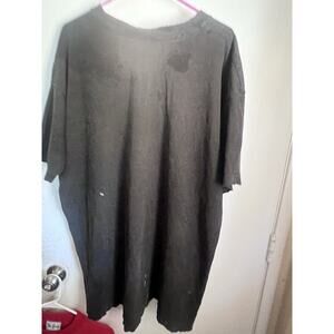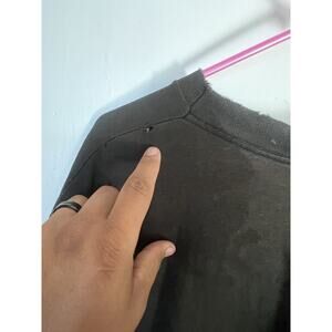 Shirt has stains. holes and distress around collar and sleeve see pictures carefully ask questions