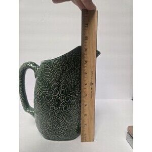 Vintage Beaver Farm Pottery Floral Green Water Pitcher Iced Tea Floral Design
