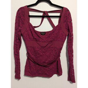Vintage Bebe 90s Burgundy Red Lace Long Sleeve Sweetheart Top Clubwear Y2K Med