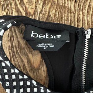 Vintage Bebe Black and White Patterned Top Peplum Women's S