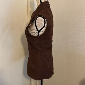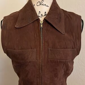 Vintage Bebe Boho Brown Suede Leather Zipper Closure Vest. Size medium; refer to approximate measurements in photos since this is a vintage item.