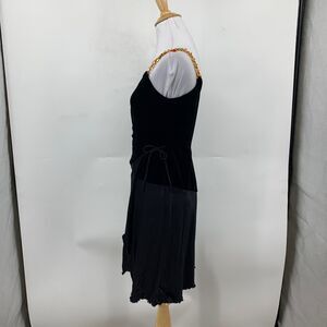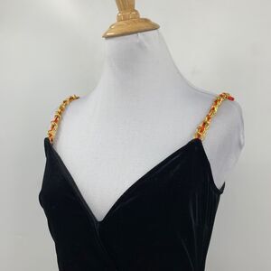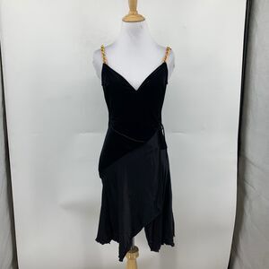 Vintage Bebe Dress Womens Small Black Velvet Gold Chain Strap Asymmetrical Wrap