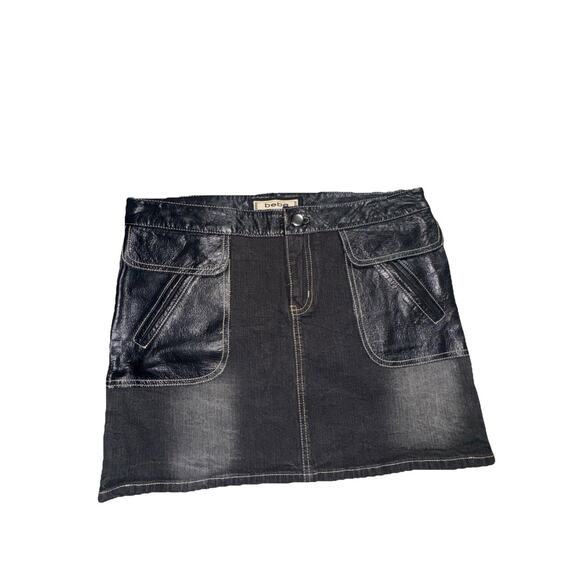 Vintage Bebe Micromini Skirt Women 30 Black Leather Pocket Short Y2K ( J4)